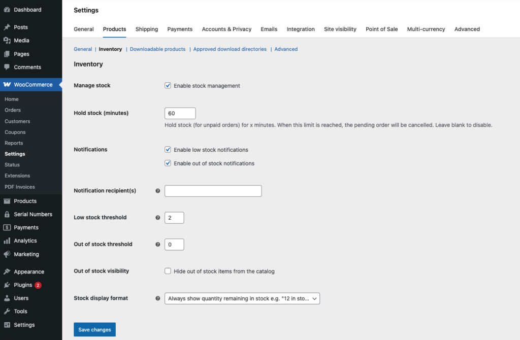 WooCommerce sends two types of stock emails automatically once you’ve enabled inventory management: