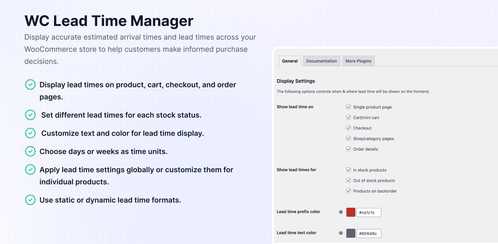 • Option to set display lead time on a single product page, cart page, checkout page, shop page, category page, or on the order details page.